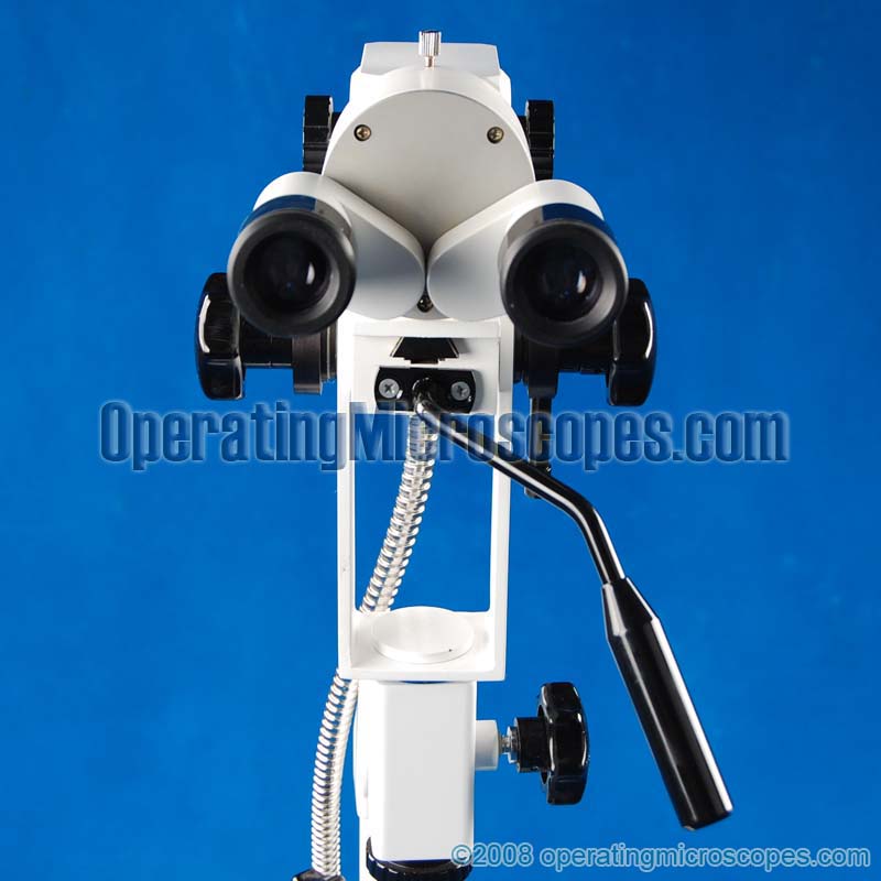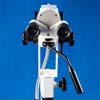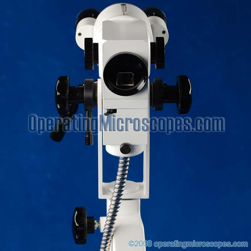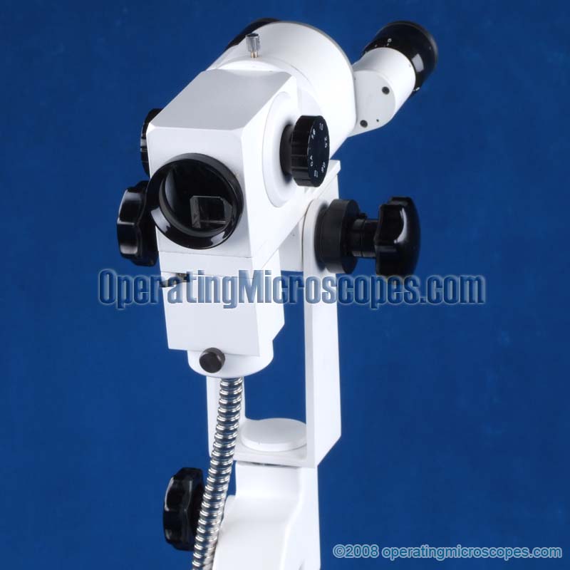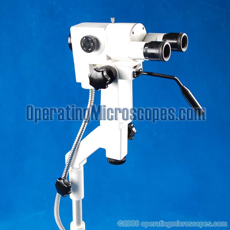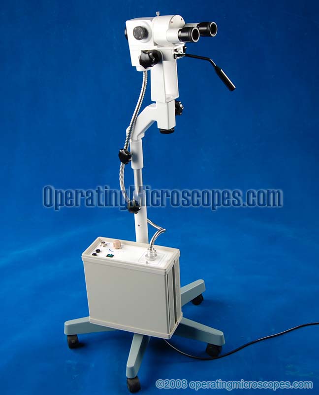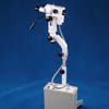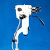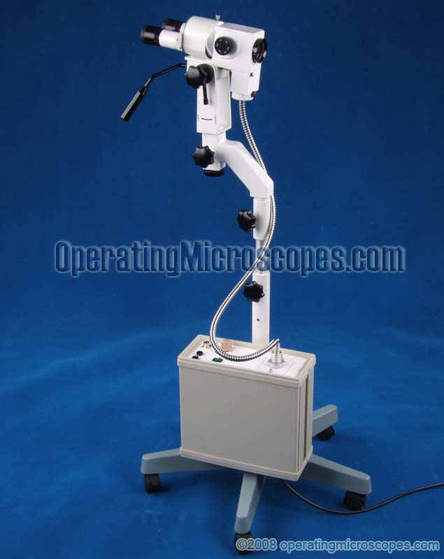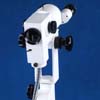 This model is a colposcope for gynecology medical applications. The equipment is identical to model MS-131, with the exception that it has a straight binocular head. A useful option is a beam splitter, ccd camera adapter, and ccd camera for taking the video image to a cctv monitor for medical personnel in the room to view, or for the gynecological procedure to be videotaped. Some of the photos show this beam splitter and c-mount adapter, but it is not included in the base price of the microscope. The microscope has a five-step manually changed magnification. The optics give good depth of field. A green filter is included to add contrast. The illumination method is via fiber optics. This model does not have US FDA certification but does have CE certification.